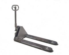 You can find a pallet truck that resists the cold temperatures of your freezer. While a standard pallet truck may not last long in the bitter cold, the exterior of this Freezer Special Pallet Truck (pallet jack) is designed to resist the corrosion caused by frequent condensation. They nylon wheels and hydraulic pump counter the effects of cold freezer environments. Freezer Pump Unit – External components are cadmium plated to protect from condensation and low temperature hydraulic fluid prevents freezing. Hot Dipped Galvanized Frame – Galvanizing process gives durable corrosion protection that stands up to the constant abrasion of pallet entry and exit. Solid Nylon Wheels and Rollers – Solid nylon provides a durable rolling surface that will not wear prematurely in applications with extreme temperature changes. Stainless Steel – The pump pistons and fork pins are critical components that require the full corrosion resistance of high quality Stainless Steel. |